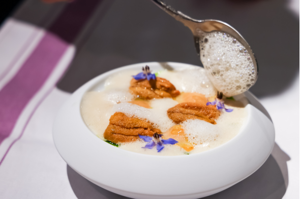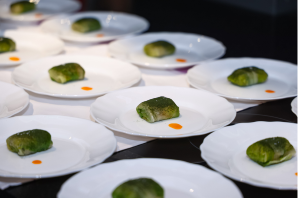 致辞结束后,学员参观展厅,通过互动体验了解意大利食材体系与厨房器具间的文化关联。当天课程由杭州米其林星级餐厅 ENRICO BARTOLINI 行政主厨尼古拉斯·雷纳(Nicholas Reina)及团队授课。通过示范与工作坊相结合的形式,主厨系统讲解多道意式原创食谱,从技法、风味结构到食材搭配提供了专业且可操作的教学内容。