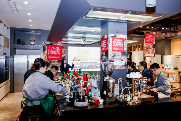 本届活动在上海徐汇区的欧美佳电旗舰店举办。该空间以现代化厨房设施与专业配置,为教学示范与实践课程提供了优越条件。现场陈列的 Smeg 等意大利家电品牌进一步展现了“意大利制造”(Made in Italy)在设计、美学与生活方式领域的综合价值,使参与者在学习技艺的同时也得以感受意大利工艺的延展性。